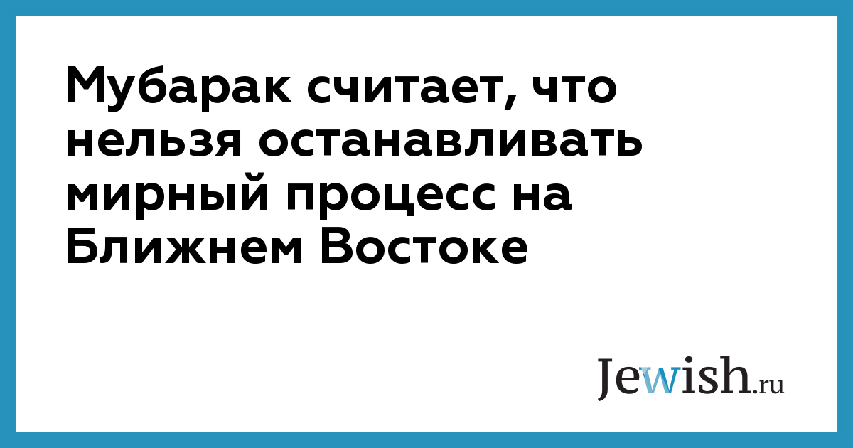 Мубарак считает, что нельзя останавливать мирный процесс на Ближнем Востоке