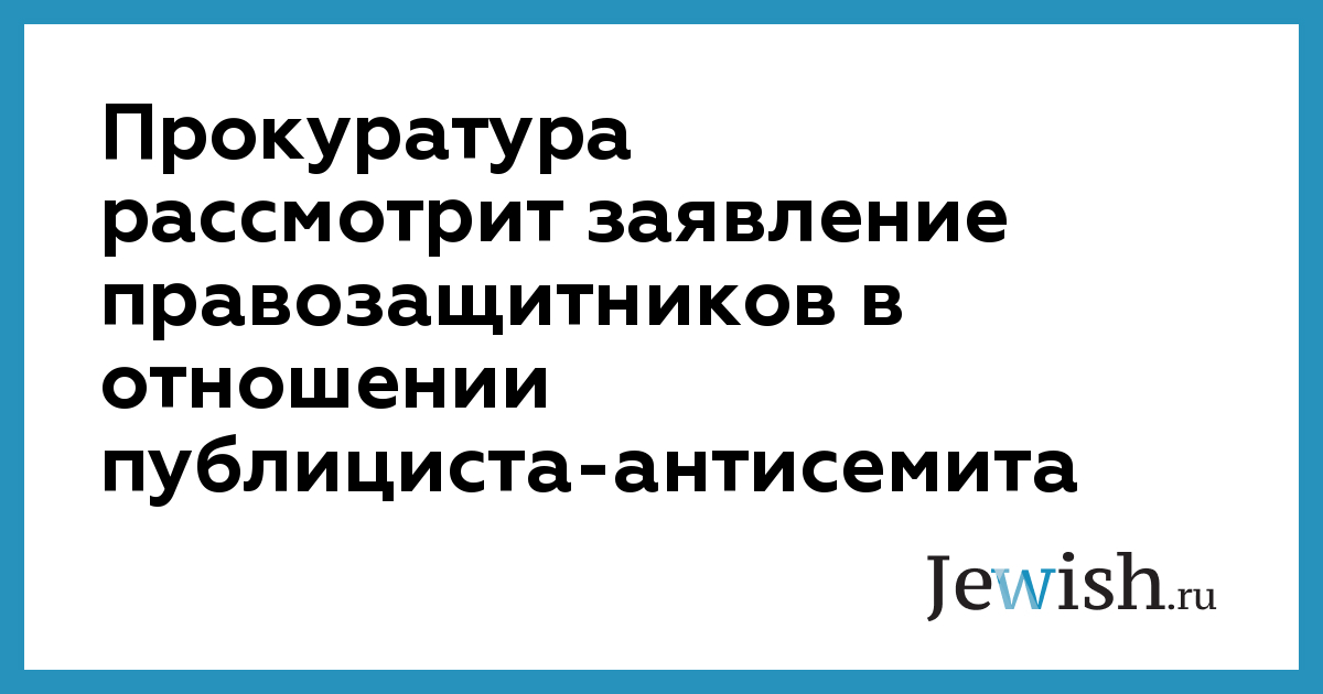 Прокуратура рассмотрит заявление правозащитников в отношении публициста-антисемита