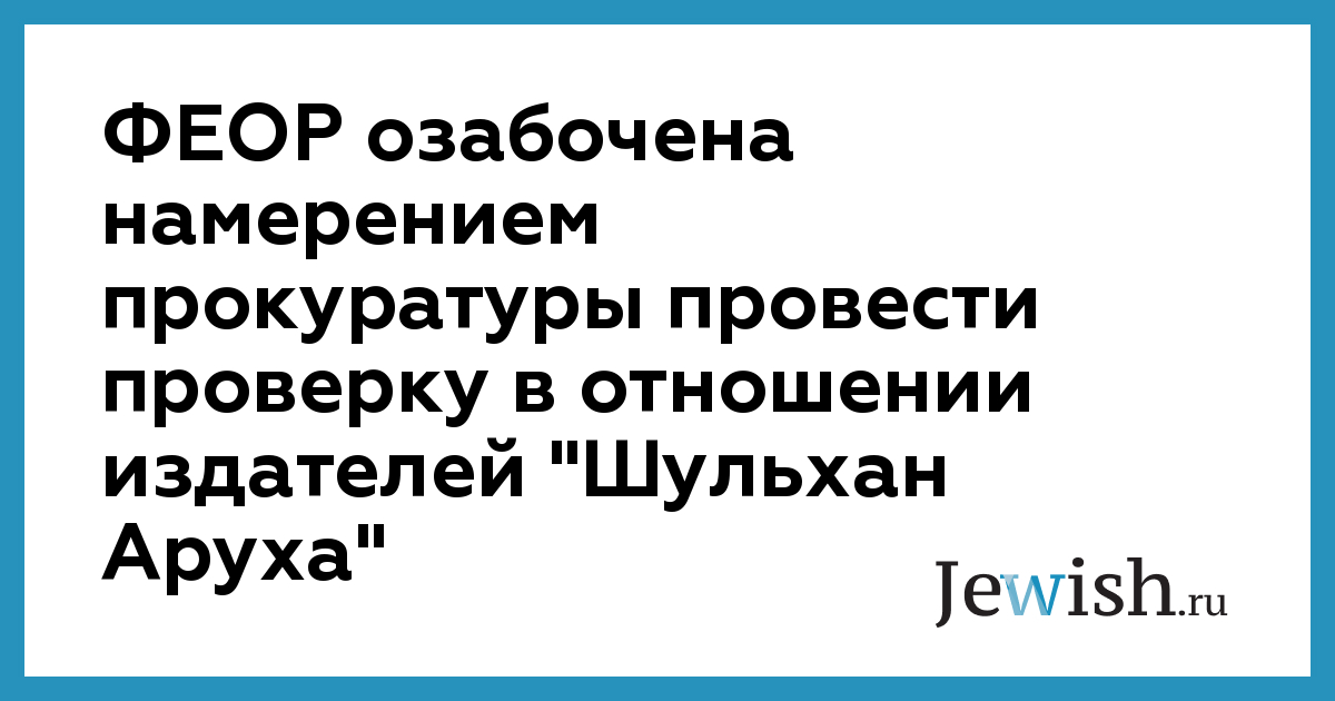ФЕОР озабочена намерением прокуратуры провести проверку в отношении издателей "Шульхан Аруха"