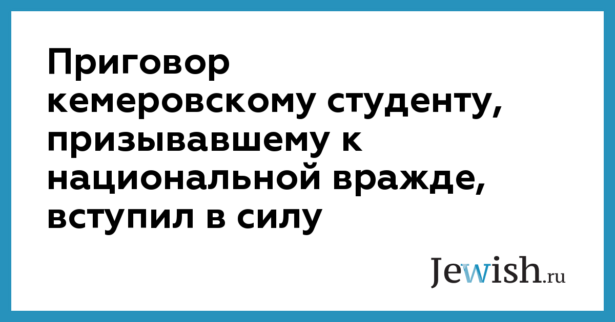Приговор кемеровскому студенту, призывавшему к национальной вражде, вступил в силу