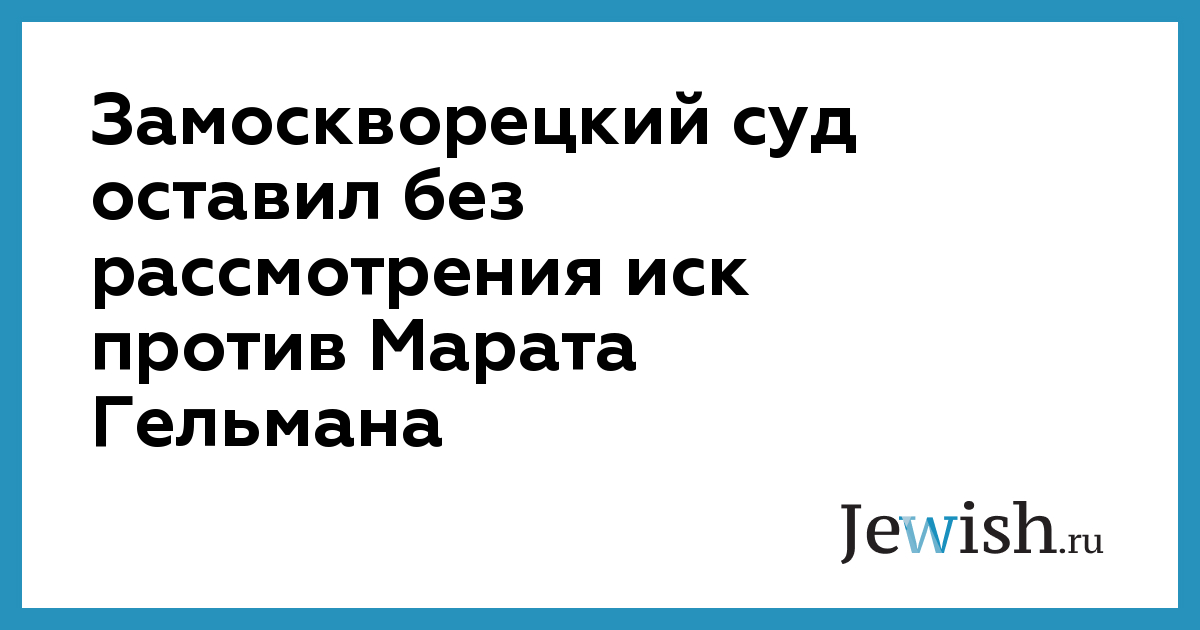 Замоскворецкий суд оставил без рассмотрения иск против Марата Гельмана