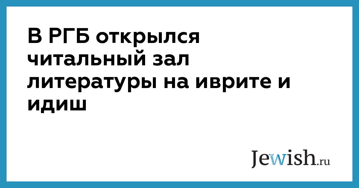 В Центре восточной литературы Российской государственной библиотеки (РГБ) открылся читальный зал литературы на иврите и идиш.