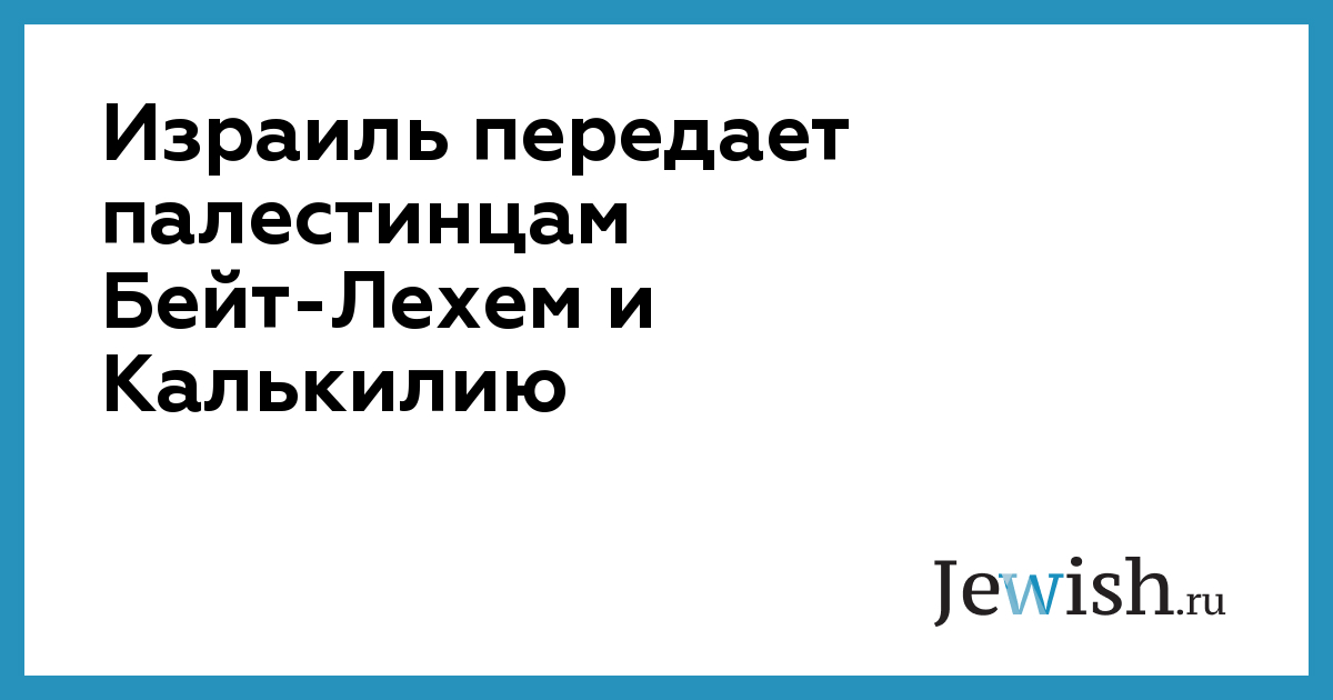 Израиль передает палестинцам Бейт-Лехем и Калькилию