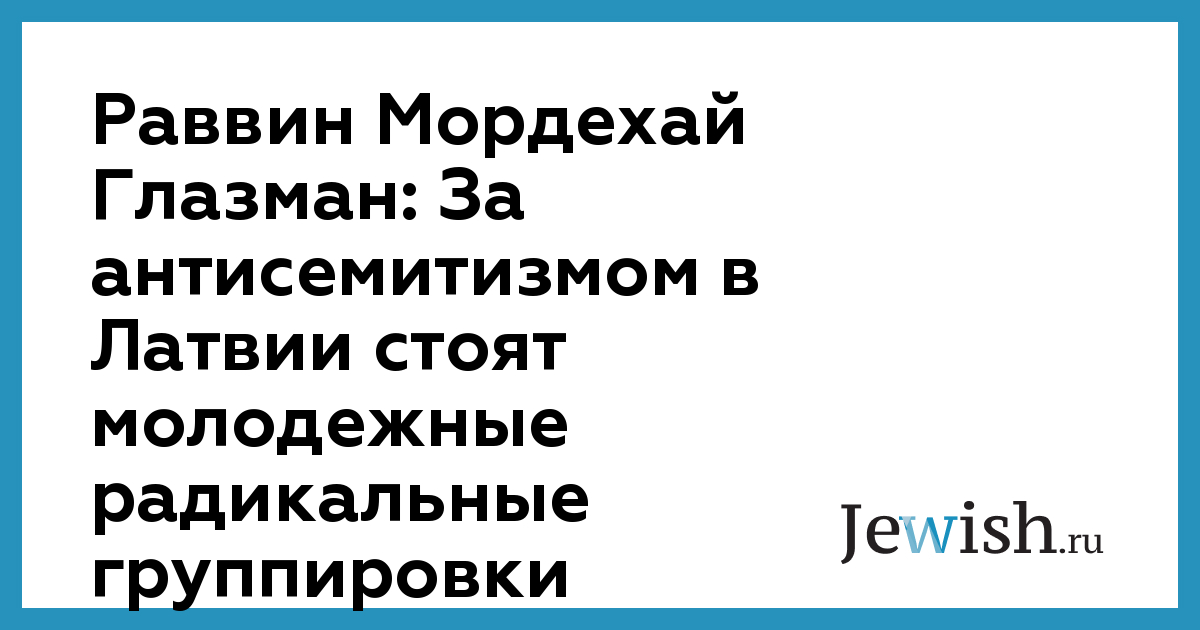 Раввин Мордехай Глазман: За антисемитизмом в Латвии стоят молодежные радикальные группировки
