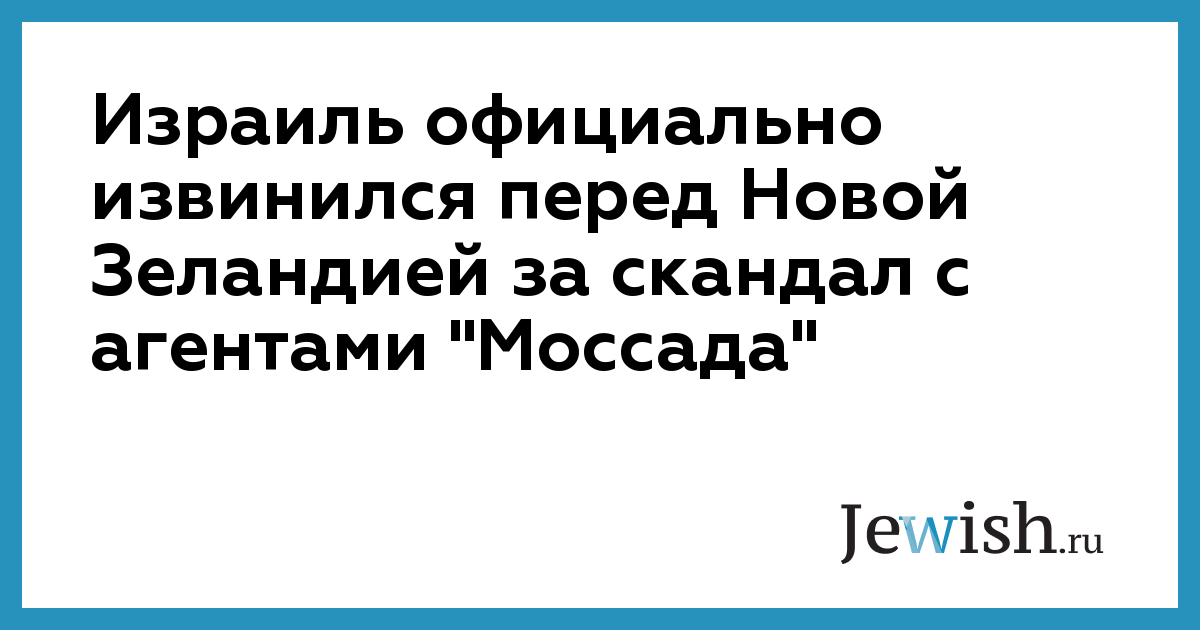 Израиль принес извинения Новой Зеландии за незаконные действия на территории этой страны двух предполагаемых агентов "Моссада", сообщает Guardian. Теперь дипломатические санкции против Израиля полностью отменены.