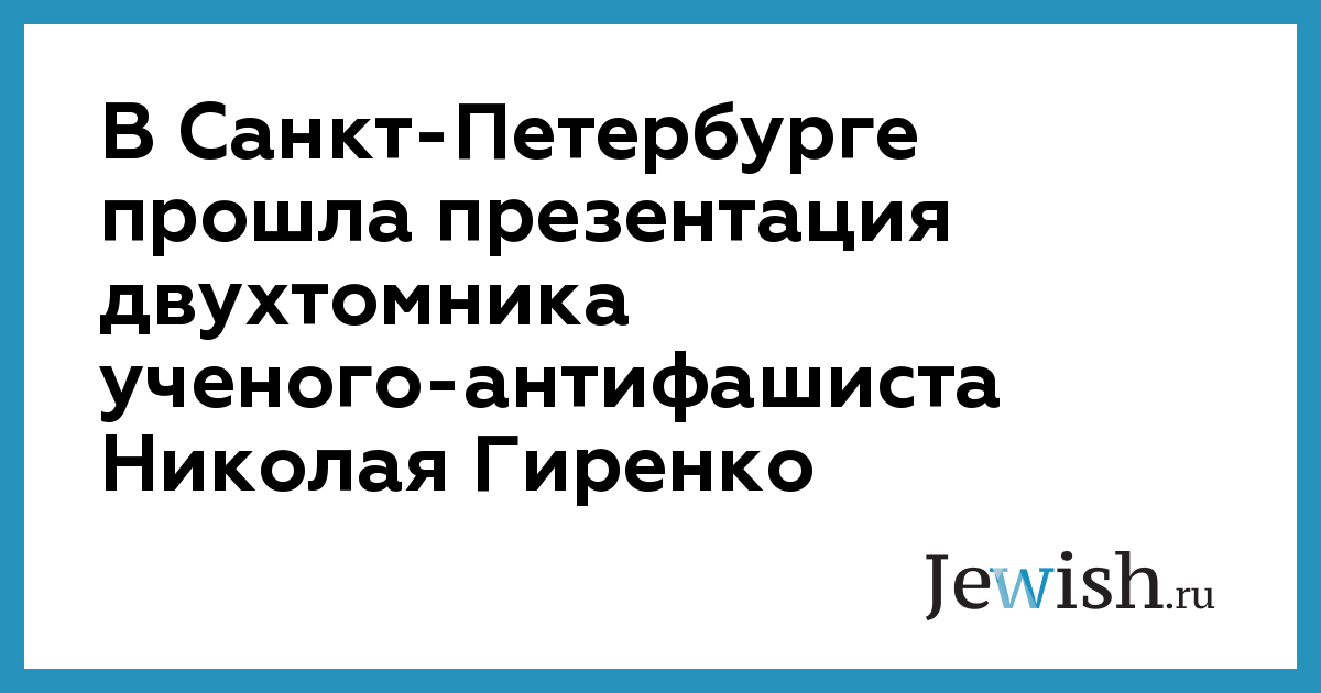 В Санкт-Петербурге прошла презентация двухтомника ученого-антифашиста Николая Гиренко