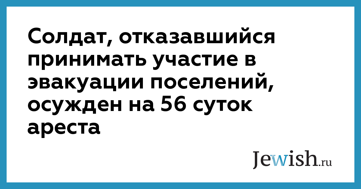 Солдат, отказавшийся принимать участие в эвакуации поселений, осужден на 56 суток ареста