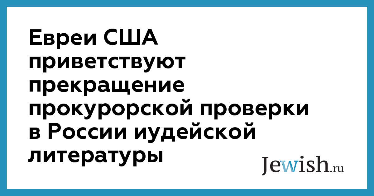 Евреи США приветствуют прекращение прокурорской проверки в России иудейской литературы