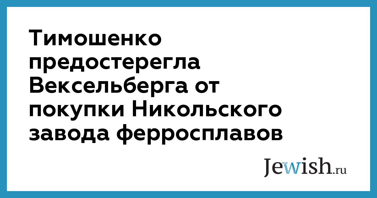 Тимошенко предостерегла Вексельберга от покупки Никольского завода ферросплавов