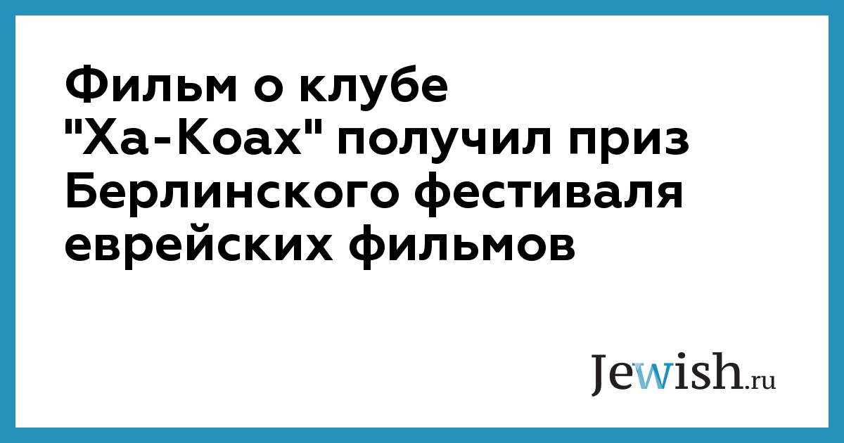 Фильм о клубе "Ха-Коах" получил приз Берлинского фестиваля еврейских фильмов
