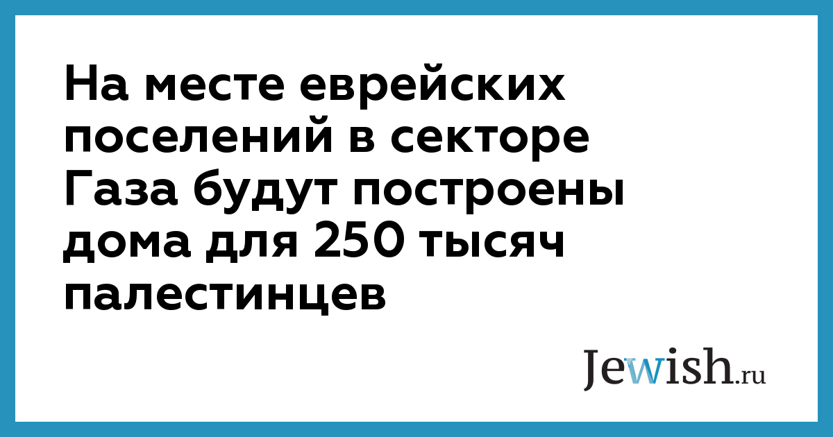 На месте еврейских поселений в секторе Газа будут построены дома для 250 тысяч палестинцев