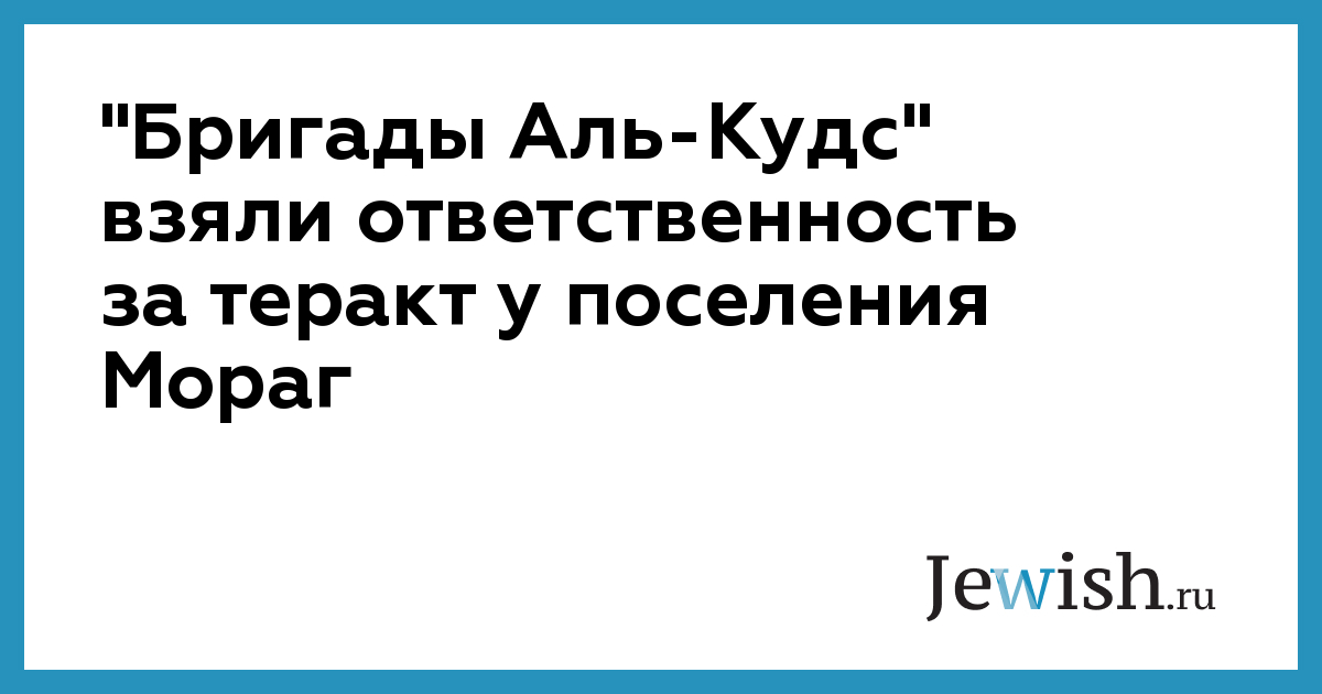 "Бригады Аль-Кудс" взяли ответственность за теракт у поселения Мораг