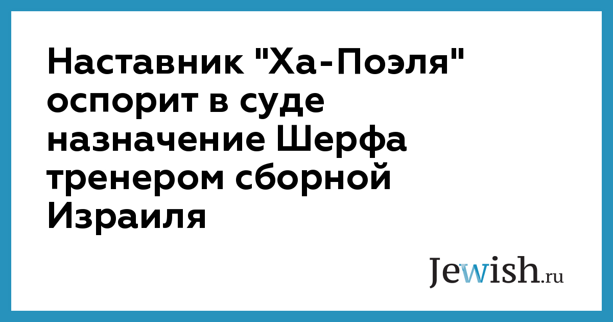 Наставник "Ха-Поэля" оспорит в суде назначение Шерфа тренером сборной Израиля