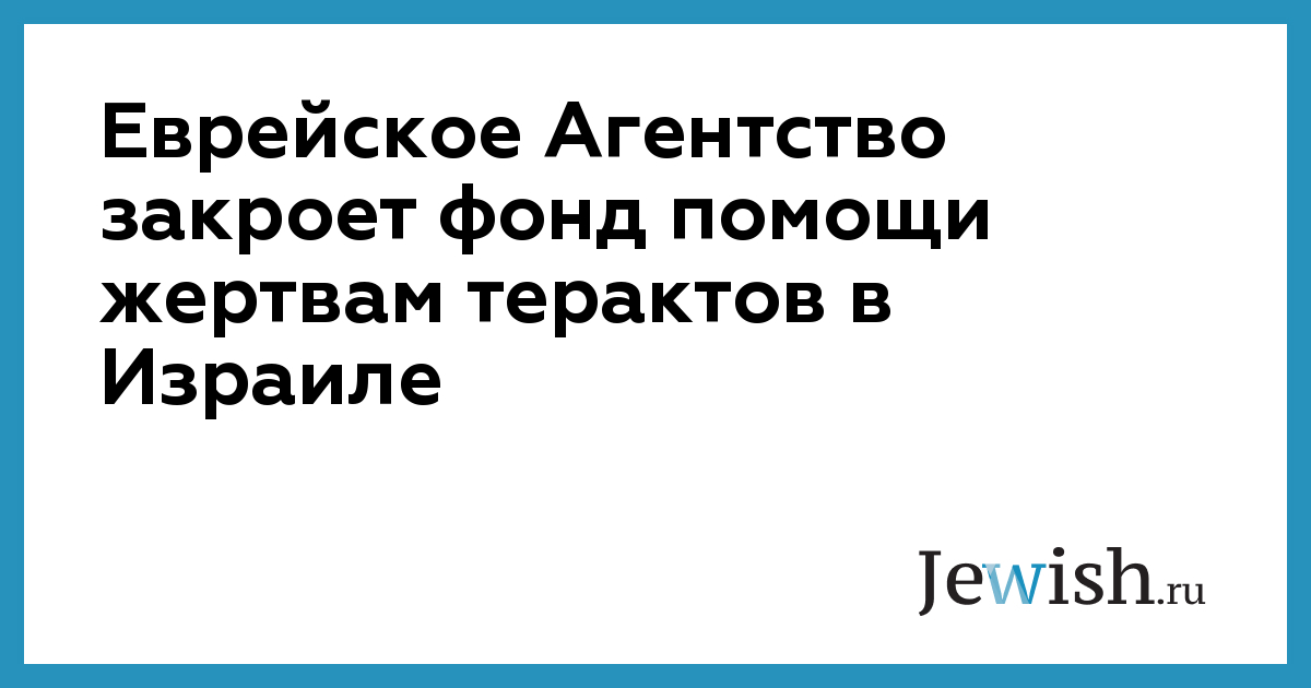 Еврейское Агентство закроет свой фонд помощи израильским жертвам терроризма.