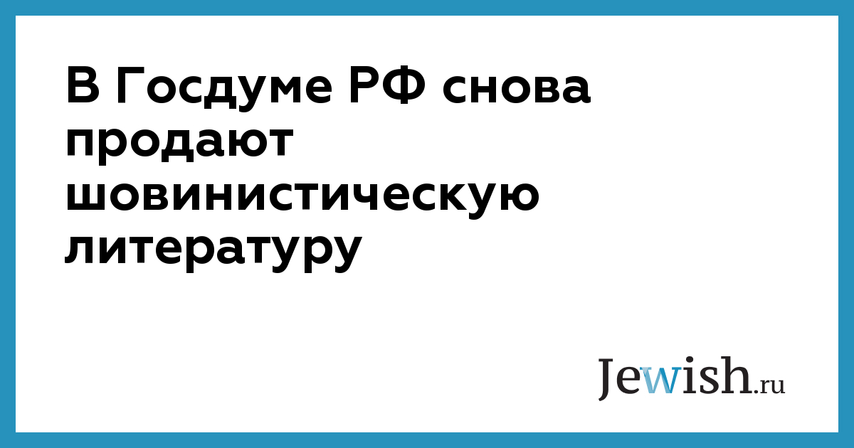 В книжном киоске Государственной Думы РФ появилась в продаже новая шовинистическая книга одиозного псевдоисторика Олега Платонова "Еврейский вопрос в России", издательство "Яуза". МБПЧ неоднократно отмечало, что подобные издания продаются в нижней палате российского парламента регулярно.