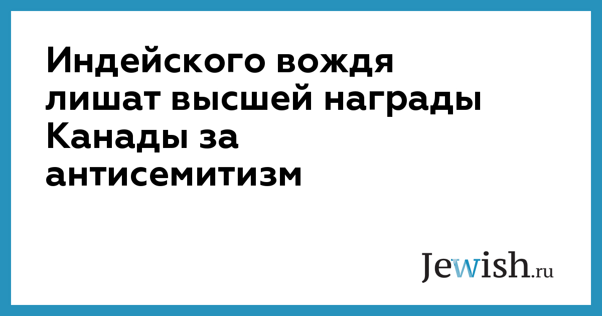 Канадский индейский вождь может лишиться "Ордена Канады" — высочайшей чести страны за антисемитские высказывания и призывы.