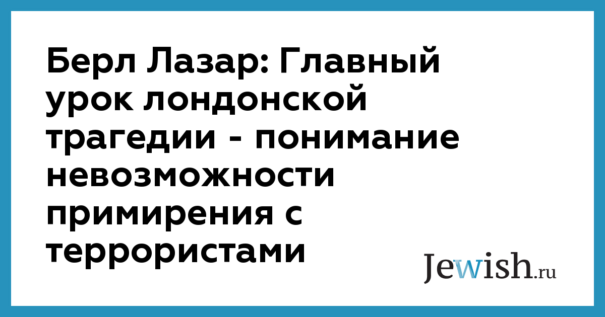 Берл Лазар: Главный урок лондонской трагедии — понимание невозможности примирения с террористами