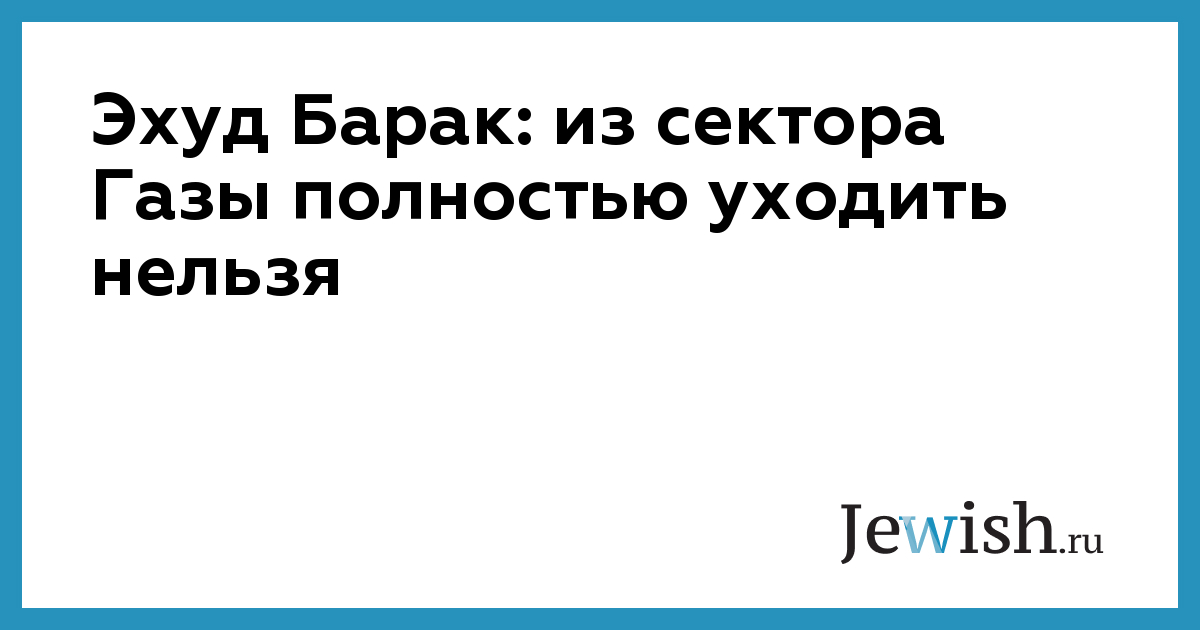 Эхуд Барак: из сектора Газы полностью уходить нельзя