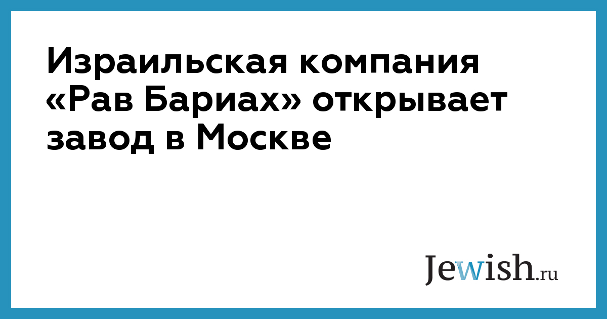 Израильская компания «Рав Бариах» открывает завод в Москве