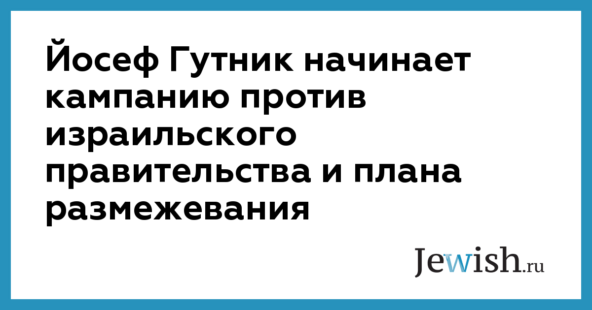 Йосеф Гутник начинает кампанию против израильского правительства и плана размежевания