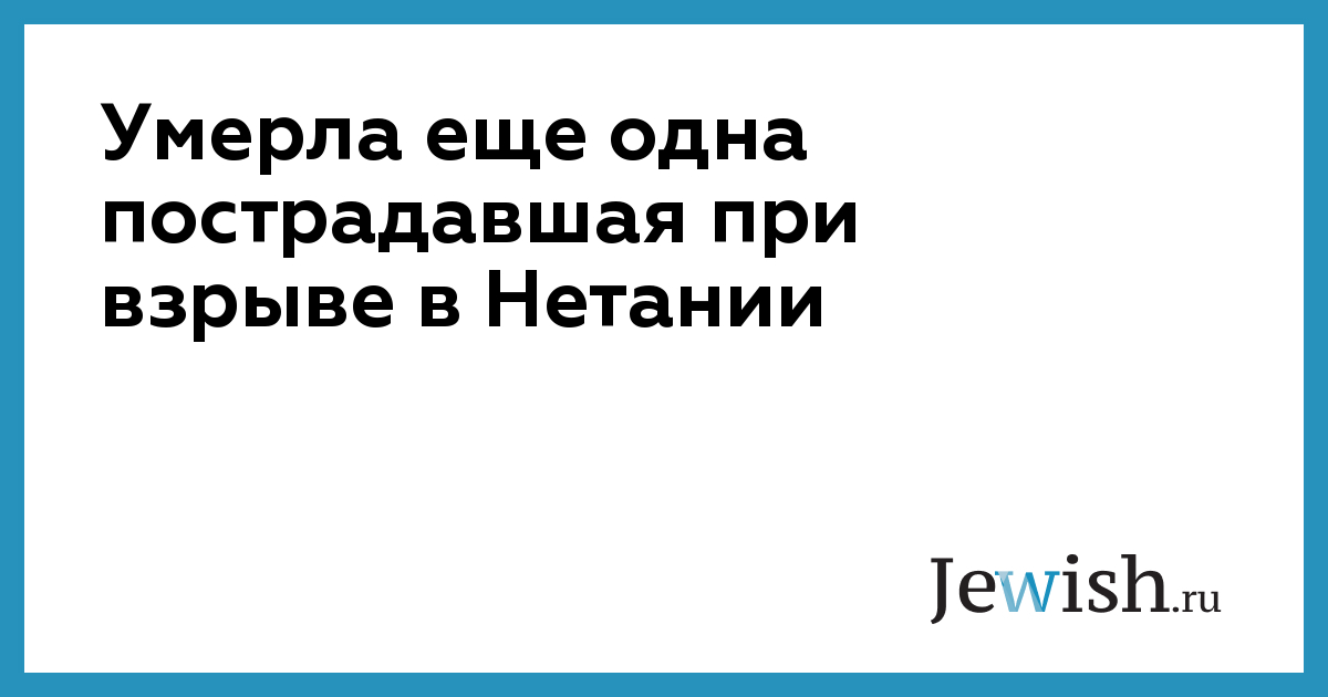 Умерла еще одна пострадавшая при взрыве в Нетании