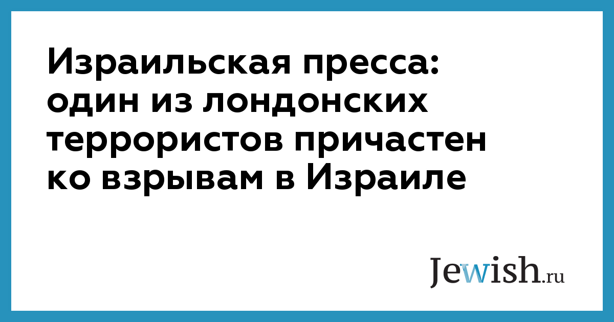 Израильская пресса: один из лондонских террористов причастен ко взрывам в Израиле