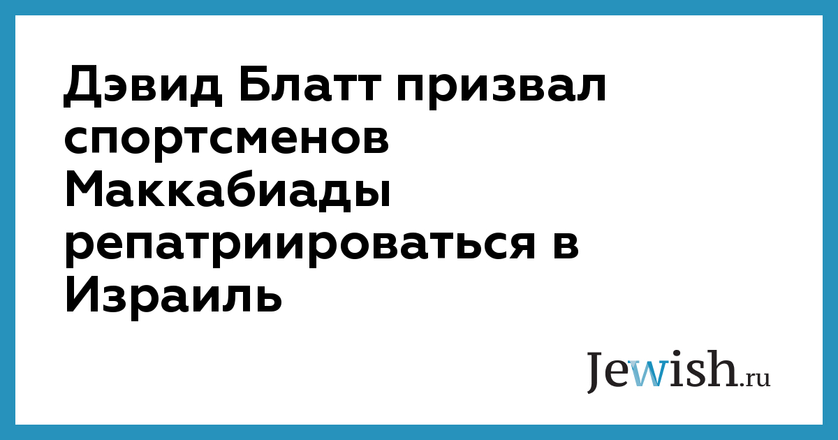 Дэвид Блатт призвал спортсменов Маккабиады репатриироваться в Израиль