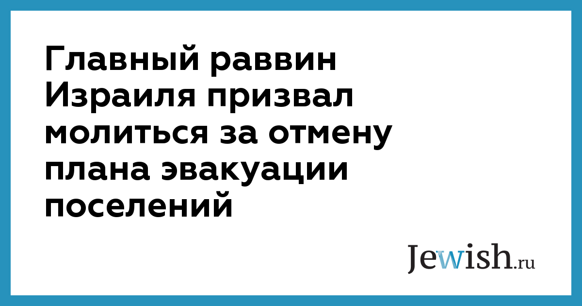 Главный раввин Израиля призвал молиться за отмену плана эвакуации поселений