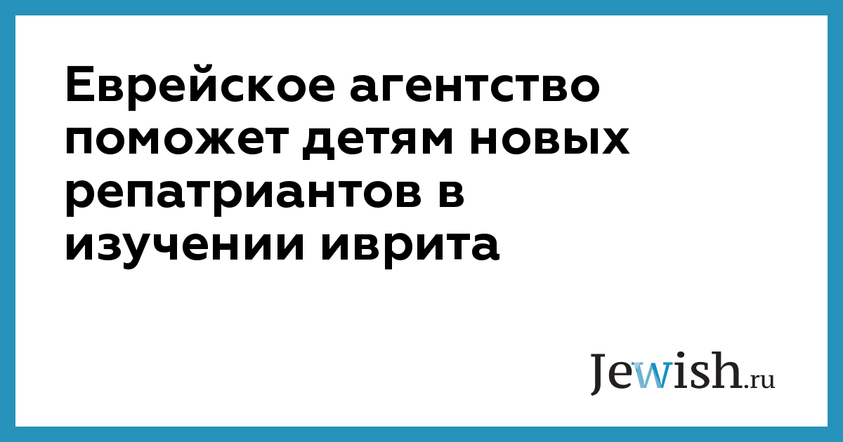 Еврейское агентство поможет детям новых репатриантов в изучении иврита