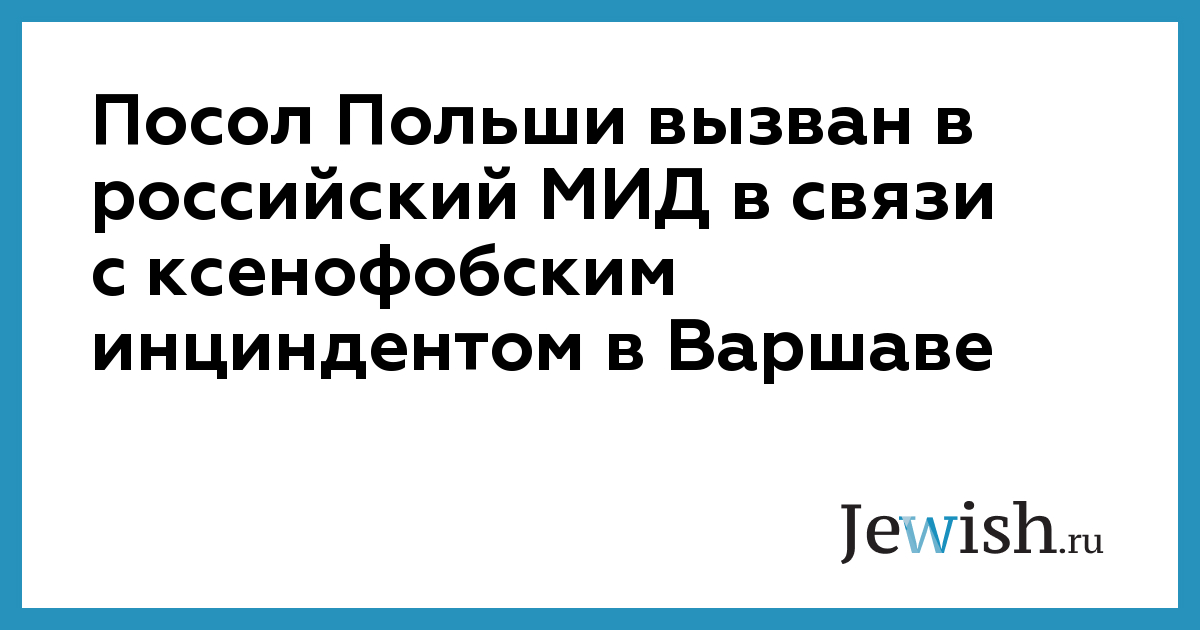 Посол Польши вызван в российский МИД в связи с ксенофобским инциндентом в Варшаве