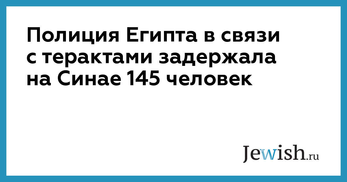 Египетские полицейские в ходе операции, начатой после взрывов в Шарм-аш-Шейхе, задержали на Синае 145 человек, находившихся в розыске по подозрению в различных преступлениях.