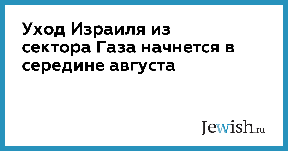 Уход Израиля из сектора Газа и ряда поселений севера Западного берега реки Иордан начнется в середине августа и займет четыре-пять недель.