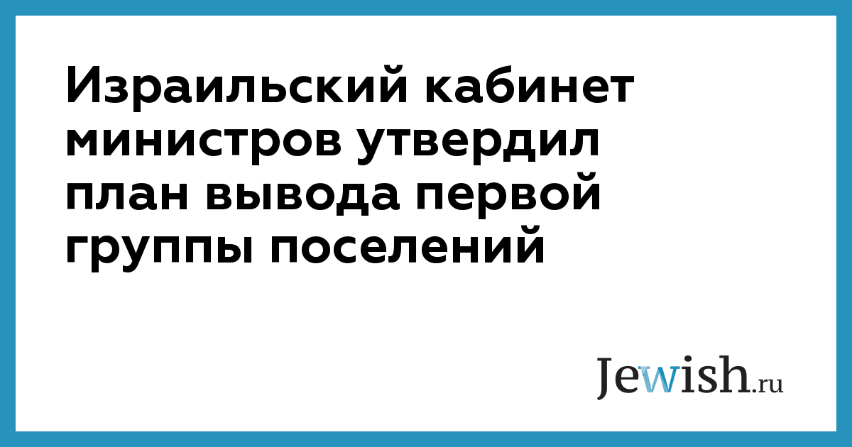 Израильский кабинет министров утвердил план вывода первой группы поселений