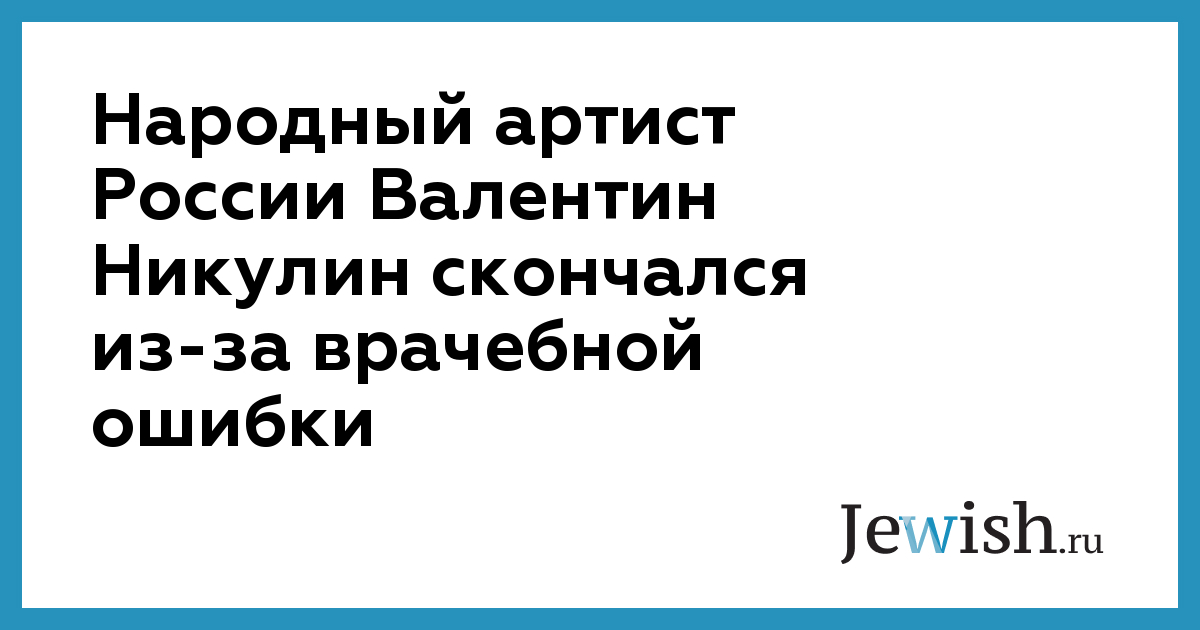 Народный артист России Валентин Никулин скончался из-за врачебной ошибки