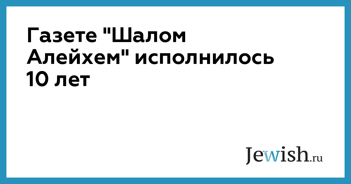 Газете "Шалом Алейхем" исполнилось 10 лет