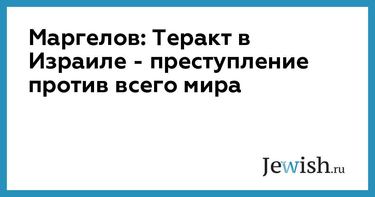 Председатель комитета Совета Федерации по международным делам Михаил Маргелов считает, что совершенный в четверг в Израиле — преступление против всего мира.