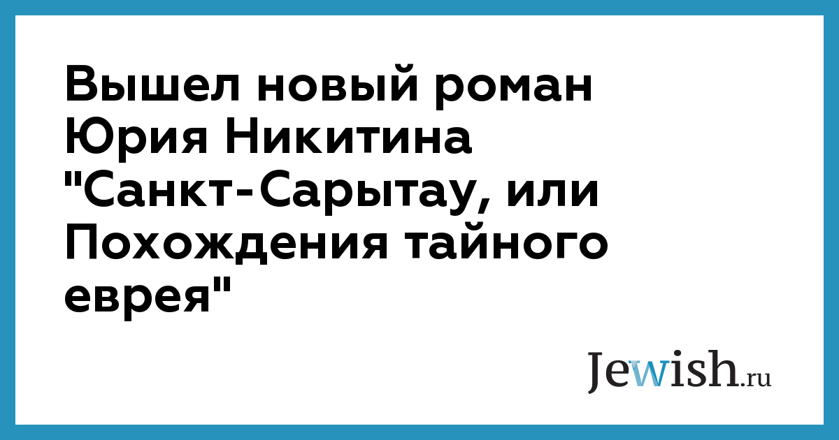 Вышел новый роман Юрия Никитина "Санкт-Сарытау, или Похождения тайного еврея"