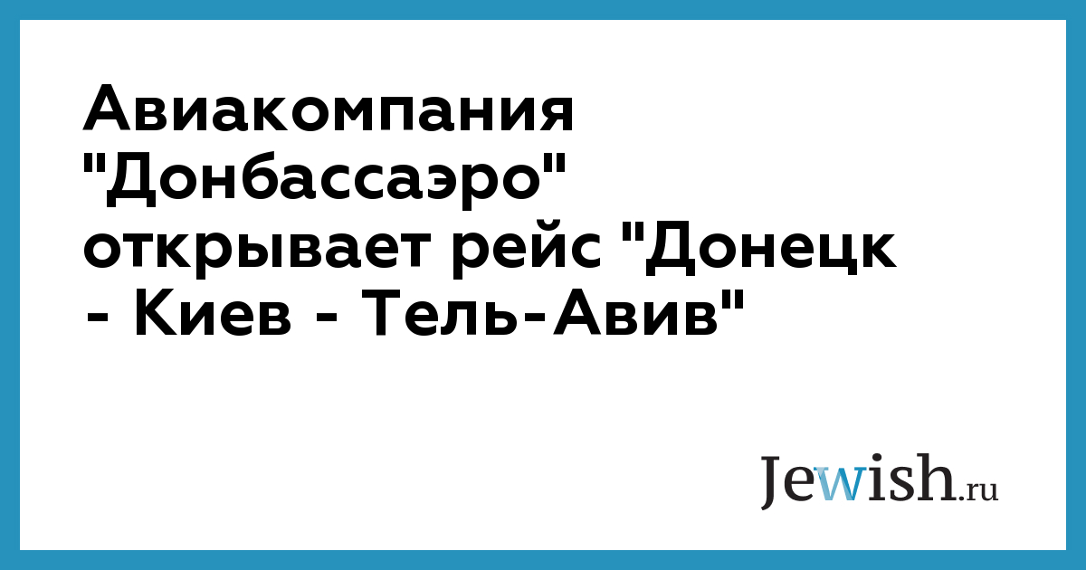 Авиакомпания "Донбассаэро" открывает рейс "Донецк — Киев — Тель-Авив"