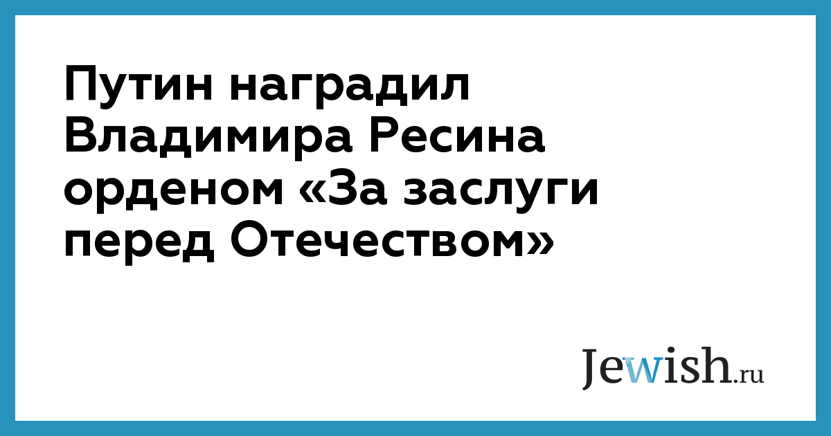 Путин наградил Владимира Ресина орденом «За заслуги перед Отечеством»