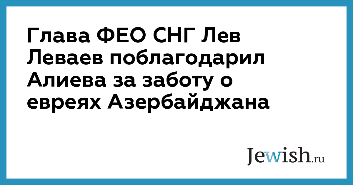 Руководитель Федерации еврейских общин (ФЕО) СНГ Лев Леваев направил президенту Азербайджана Ильхаму Алиеву письмо с благодарностью за внимание к еврейской общине в республике.