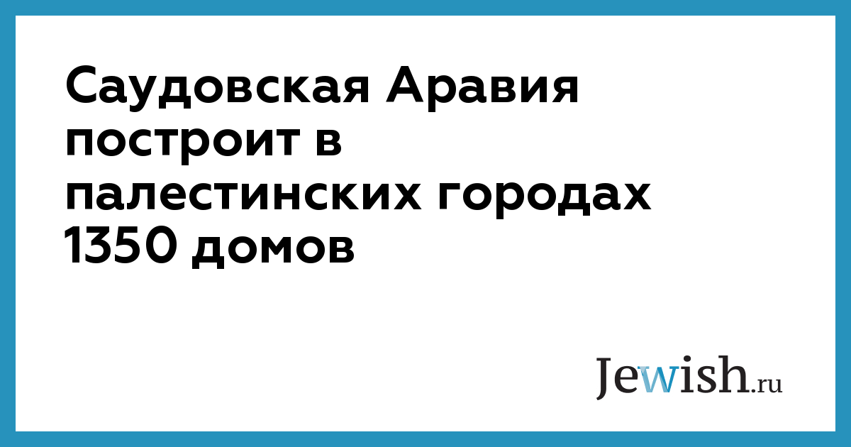 Саудовская Аравия построит в палестинских городах 1350 домов