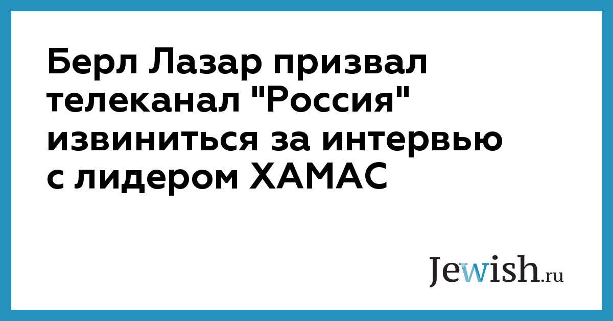 Главный раввин России Берл Лазар сделал заявление в связи выходом в эфир канала «Россия» интервью с руководителем организации ХАМАС Махмудом аз-Захаром. Полный текст заявления приведен ниже.
