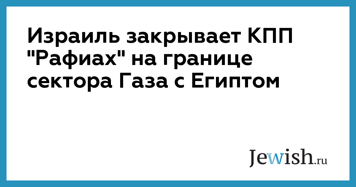 Израиль закрывает КПП "Рафиах" на границе сектора Газа с Египтом