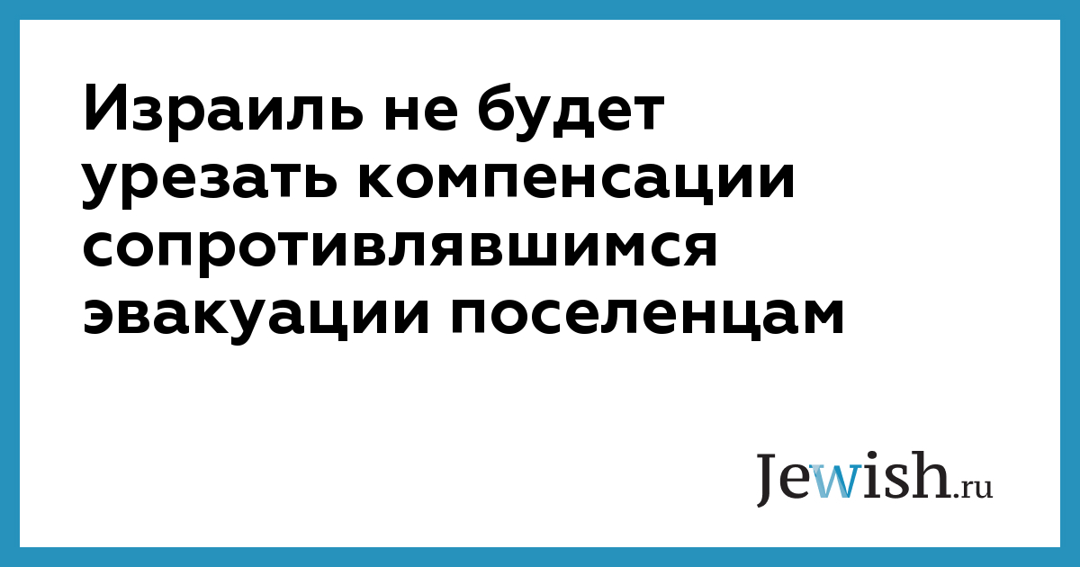 Израиль не будет урезать компенсации сопротивлявшимся эвакуации поселенцам