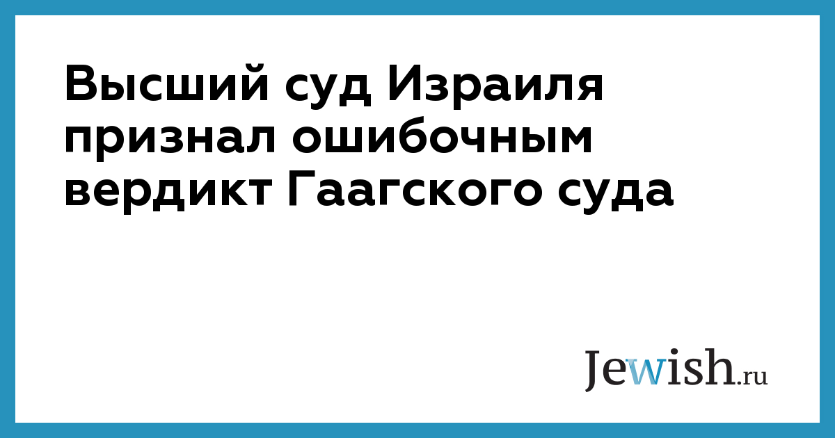 Высший суд Израиля признал ошибочным вердикт Гаагского суда