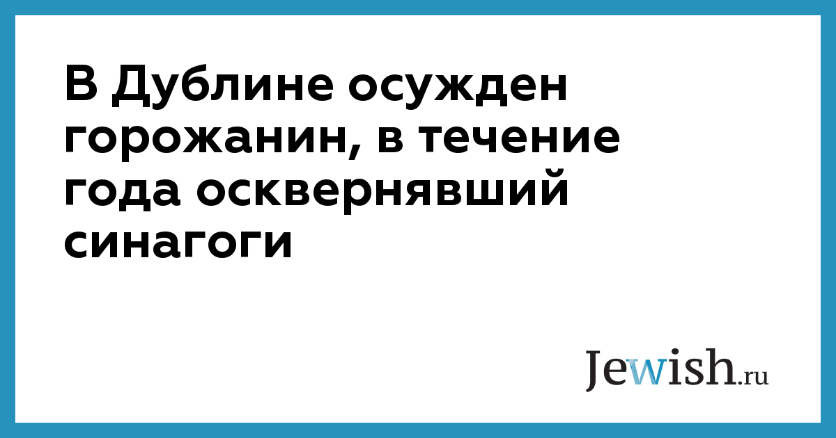 Ирландский суд приговорил к 20 месяцам тюремного заключения жителя Дублина, виновного в нескольких актах вандализма против еврейской собственности.