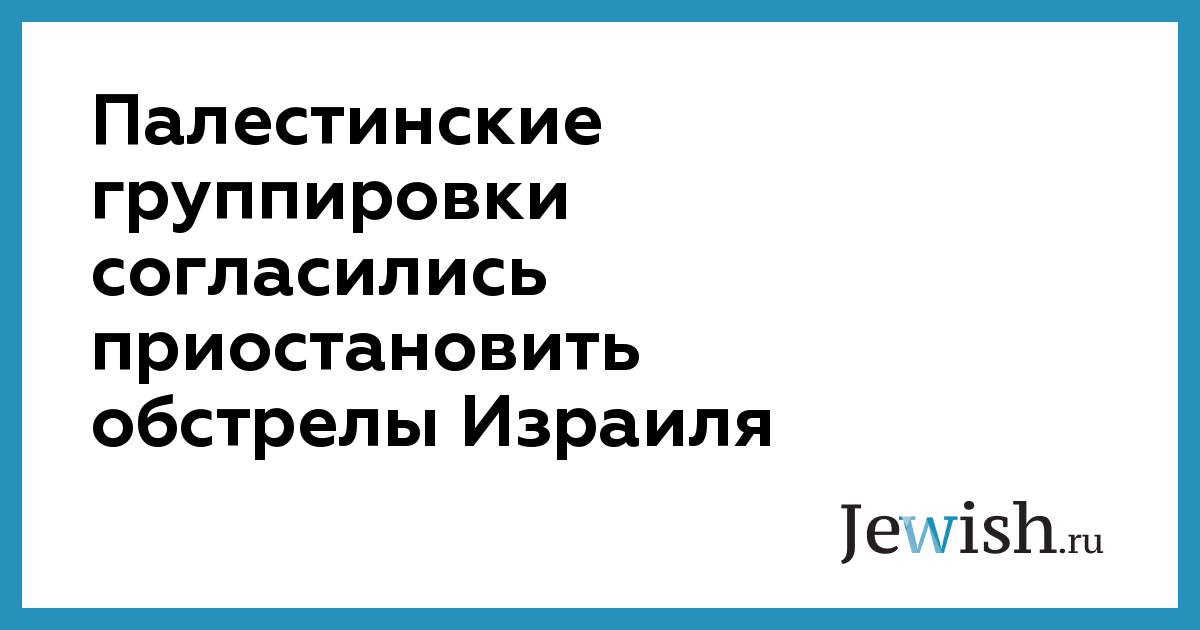 Радикальные палестинские группировки согласились приостановить обстрелы Израиля с территории сектора Газа, передает во вторник радиостанция "Коль Исраэль".