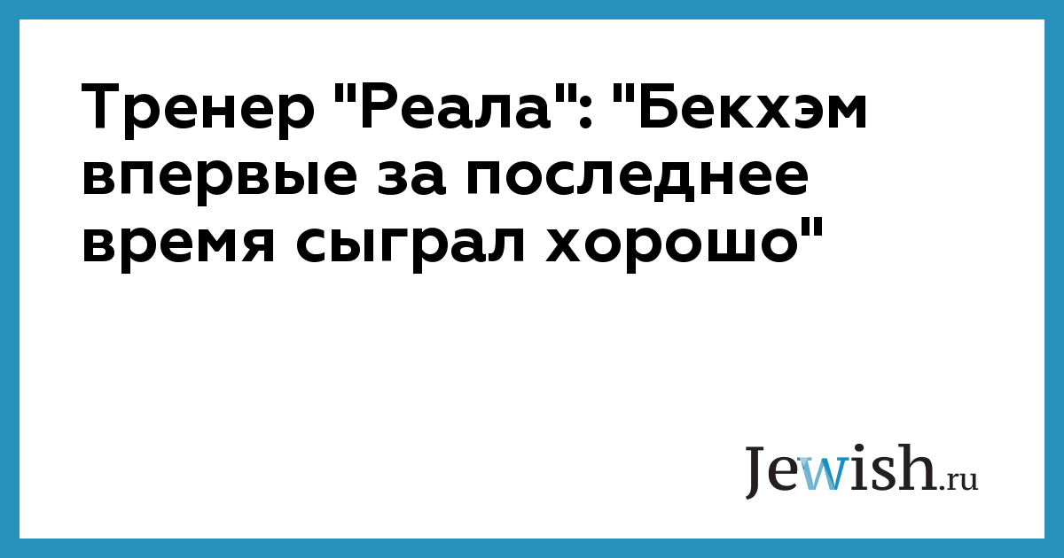 Тренер "Реала": "Бекхэм впервые за последнее время сыграл хорошо"