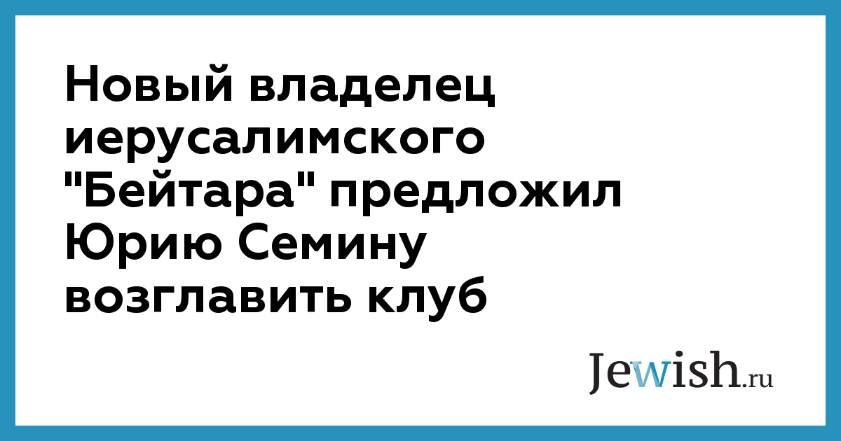 Новый владелец иерусалимского "Бейтара" Аркадий Гайдамак, находящийся в эти дни в Москве, встретился с главным тренером сборной России по футболу Юрием Семиным и предложил ему возглавить израильский клуб в случае непопадания российской сборной на чемпионат мира.