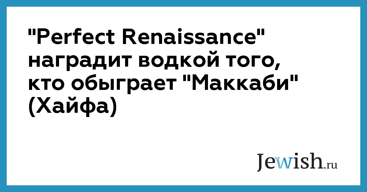 Израильское представительство фирмы-изготовителя водки "Perfect Renaissance" объявило специальную акцию, сообщает сайт киевского "Динамо". Игроки и тренеры футбольной команды, которой первой удастся обыграть чемпиона и нынешнего лидера израильской премьер-лиги "Маккаби" (Хайфа), получат по ящику водки на каждого. После 4-х туров хайфчане набрали 12 очков из 12 возможных, и уверенно возглавляют таблицу. "Чтобы взбодрить соперников, добавить дополнительную интригу в соревнования, мы решили внести свою лепту", — заявил генеральный директор "Perfect Renaissance" в Израиле Даниэль Резник.